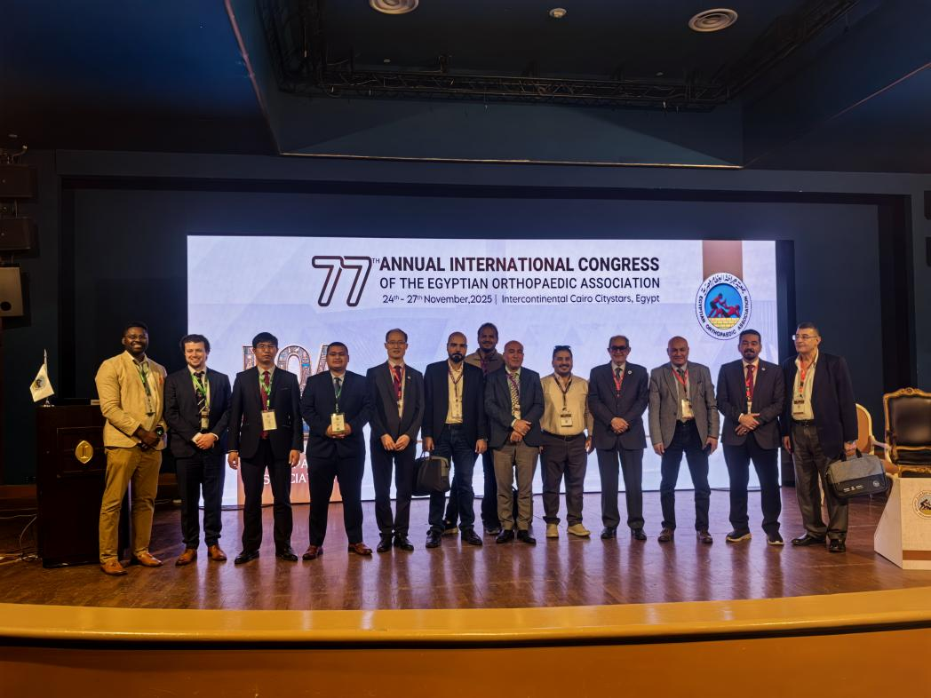 第77屆埃及國際骨科學會(EOA)于2025年11月24日至27日在開羅隆重舉行。作為中東及北非地區(qū)規(guī)模最大、影響力最廣的骨科盛會,本屆會議吸引了來自中國、美國、英國、德國、法國、日本、澳大利亞、沙特阿拉伯、埃及等全球多地逾3000余名骨科專家學者齊聚一堂,共同探討創(chuàng)傷骨科、關節(jié)外科、肢體重建外科、足踝外科、基礎研究等領域的最新研究成果與臨床前沿進展,以期共同推動全球醫(yī)學發(fā)展進步。本次盛會一共400場學術演講與討論。