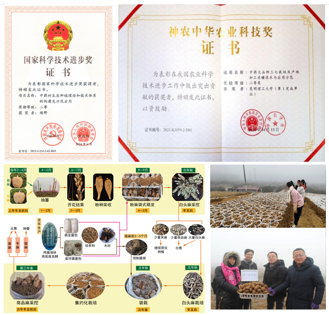 三七生態(tài)種植攻克了連作障礙、質(zhì)量溯源等難題,建立了綠色栽培技術(shù)體系,(獲農(nóng)業(yè)農(nóng)村部神農(nóng)中華農(nóng)業(yè)科技二等獎,國家科技進(jìn)步二等獎)。